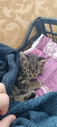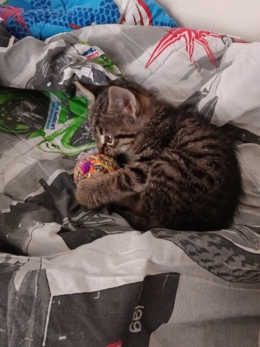Bu minik tekir yavru, sokakta yalnız kalmışken bulduk. Henüz yaklaşık 1–1,5 aylık, erkek ve çok sevecen. İlk günlerde biraz ürkekti ama şimdi kucağa alışmaya başladı. Oyun oynamayı ve ilgi görmeyi çok seviyor. Şu anda geçici olarak bakıyoruz ama ona ömürlük, sevgi dolu bir yuva bulmak istiyoruz.