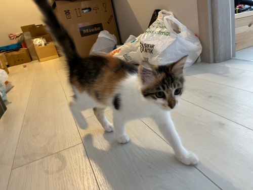 Evimde diğer kedimle beraber bakıyorum iyi anlaşıyorlar. Apartmanda kapı kapı geziyordu kapıyı açınca içeri girmiş bırakamadım. Sahiplendirmek istiyorum. Annesi gibi emmeye çalışıyor benim kediyi, benimki de istemiyor. O yüzden sahiplendirmek istiyorum. Dışarıda yaşayabileceğini sanmıyorum. Çok akıllı bir kedi. Canayakın.