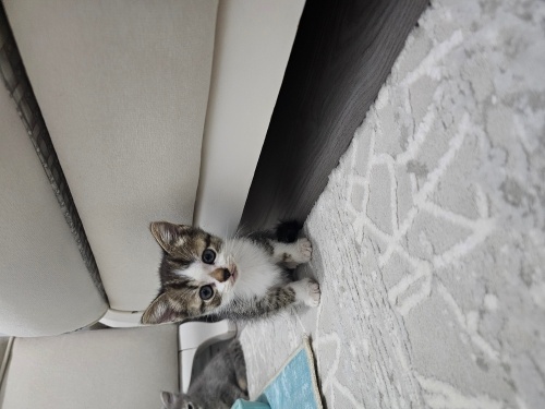 2 aylık Tekir - evcil - tuvalet eğitimi var. Herhangi bir aşı yapılmadı. Evimize geçici olarak aldığımız British Bluepoint kedinin hamile olduğunu sonradan fark ettik. Yavrularını 2 ay kadar büyüttük. Şimdi kalıca yuvasını bulma zamanı. Burnundaki renk farkından dolayı tatlı bir palyaçoya benziyor :)