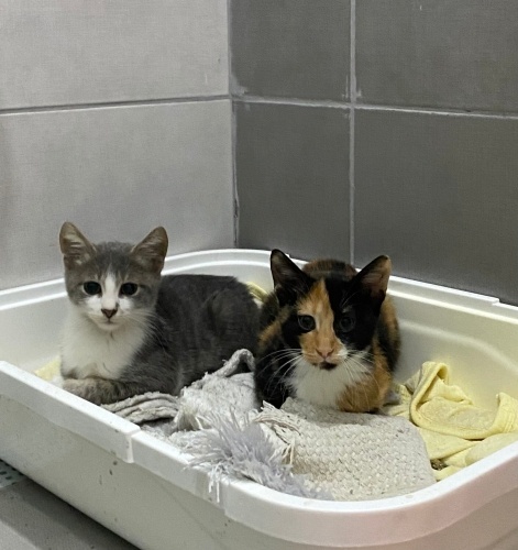 Üç renkli olan dişi, gri olan erkek. Birlikte ya da ayrı ayrı yuva arıyorlar. Anne sütüyle büyüdüler. İç dış parazitleri yapıldı. Kum kullanıyor ve kuru mama yiyorlar. İnsanlara çok alışık değiller ve korkaklar bu nedenle sabırla onların alışmasını bekleyecek ve onları sevecek ömürlük yuva arıyoruz.