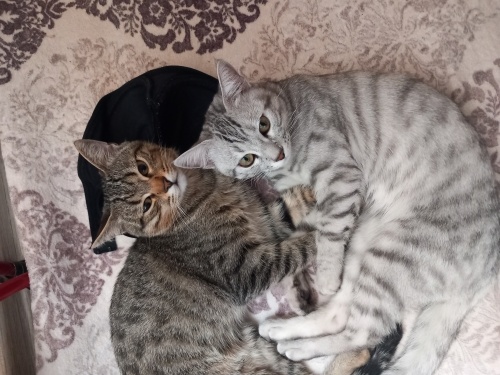 Açık renkli olan adı duman cins kedidir cinsiyeti erkektir Koyu renkli olan adi Rıfkı tekir kedidir cinsiyeti erkektir