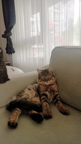 8 aylık. Bütün şehirlere nakil ayarlayabiliriz yakınsa biz götürürüz. Tüm aşıları tam, kısırlar, karneleri var. Bi masrafları yok. Çok uysal, sevgi dolu, güven ve aidiyet duygusu yüksek bir kedi. Diğer kedilerle anlaşıyor. 2, 3 hatta 4. kedi olabilir. Sadece sevgiye ihtiyacı var. Koynuna yatıp uyumaya bayılır. Anne sıcaklığı arıyorlar hala. Doğduklarından beri bir odada kalıyorlar. Sadece bizim yanlarına gideceğimiz zamanı bekliyorlar tüm gün. Çok üzülüyoruz. Sokağa gitmelerini de istemiyoruz