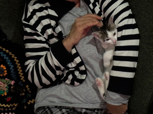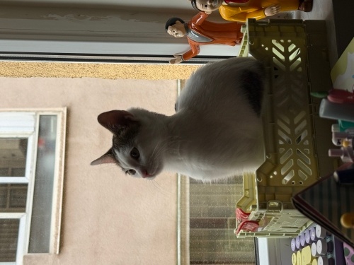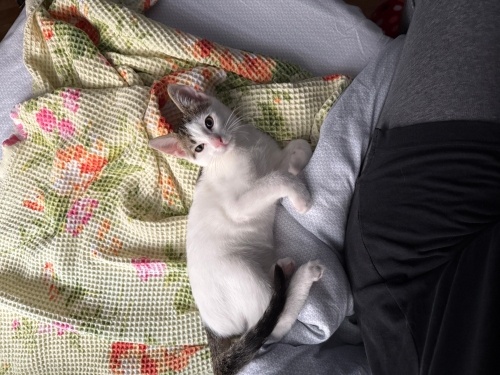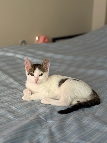 4 aylık, erkek, adı Totoro. Cadde kenarında bulduğumuzda kötü bir haldeydi ve 2.5 aylıktı. Tedavisini yaptırdık, iç-dış parazit aşılarını oldu, şu an gayet sağlıklı. Tuvaletini kuma yapıyor. Çok oyuncu, oyun oynamadığı zamanlarda da hep kucağınızda oturup gurlamak istiyor. Temas seven, çok sakin bir kedi. Vakti geldiğinde kısırlaştırma şartıyla ona kendi gibi tatlı yuvasını arıyoruz.