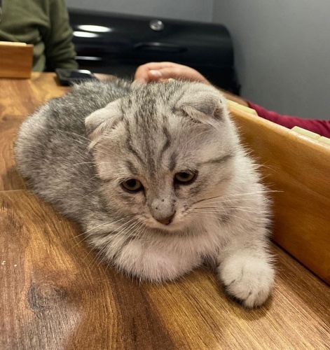 Scottish fold. Dişi. 1 yaşında. Gayet sağlıklı ve oyuncu. Kısırlaştırma şartıyla ücretsiz sahiplendirilecektir.