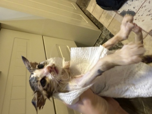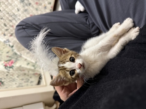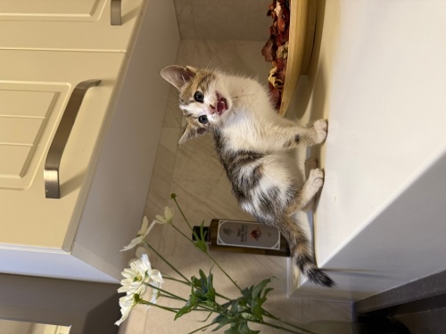 Hikayesi olan bir yavrumuz. İzmirde sağanak yağış varken çöpün yanına atılan koltuğun kırık kol kısmına saklanmış. Yol kenarı olduğu için muhtemelen kaçamamış ve çok ıslanmıştı. Yoğun pireleri vardı. Korumaya aldım. 25-30 günlük, dişi, tekir bir kedi. Az az yavru kuru maması yiyor ayrıca kedi sütü veriyorum. Annesini aradığı için insanlara çok düşkün. Boynunuzda uyur, sevgi dolu. Kumunu kullanıyor. Kedilere karşı ürkek değil(3 kedi ile yaşıyor şu an). İzmir içi yuva arıyorum. Camlarda kedi filesi/sineklik zorunludur. Sonraki süreçte iletişimde kalabileceğim, çip ve gerekli veteriner/aşı/kısırlaştırma ihtiyaçlarını yaptırabilecek aile olabilecekseniz kendinizi ve bakacağınız koşulları anlatan mesaj atabilirsiniz. İzmir gaziemirdeyiz