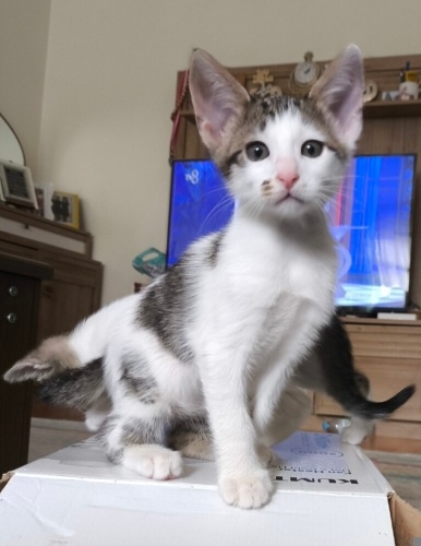 24 Temmuz tarihinde bir anne kedi doğum yapacak yer bulamadığı için apartman kapısının önüne doğum yaptığını görünce kıyamayıp eve aldık ve 5 yavrusunu büyüttük. Yavrular 2-2.5 aylık olunca, 5 kediye de evde bakamadık, aralarındaki en zayıf yavruyu sahiplendik, 4 kardeşini ise anneleriyle birlikte sokağa geri saldık fakat önümüz kış ve bu yüzden yavruları sahiplendirmeyi çok istiyoruz. Bu yavrumuzun isminin Çıtır olmasına bakmayın cinsiyeti erkek fakat yavruyken o kadar tatlı birşeydi ki ismi Çıtır olarak kaldı. Kendisi çok oyuncu bir kedidir ve insanlarla da iyi geçinir. Çok enerjiktir. Oyun oynamayı sever, tuvalet eğitimi vardır. Kendisine onu çok sevecek ve bir ömür boyu bakacak bir aile arıyoruz. (Eğer kardeşleriyle birlikte sahiplenmek isterseniz yazmanız yeterlidir)