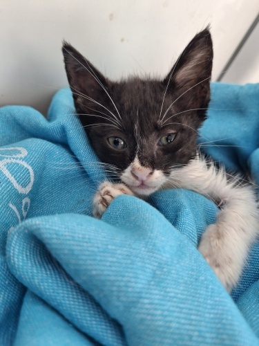 Bu sabah arabadan dört yol ağzına bırakıldı. Çok küçük, en fazla 45 günlük, siyah beyaz mini mini bir bebek. Şu an bizimle birlikte geçici yuvada. Acil yuva arıyoruz!