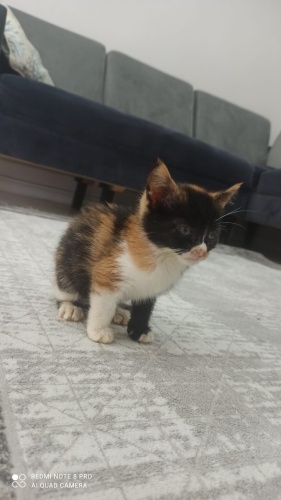 Annesi terk etmiş. Veteriner bakımlarının hepsi yapıldı. Geçici yuvada kalıyor. Eve alışık. Tuvalet eğitimi var. Tuvalet kabı ve diğer kedi eşyaları da kedi ile ücretsiz verilecektir.
