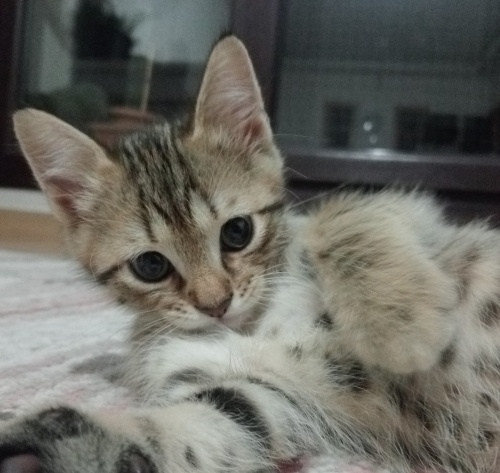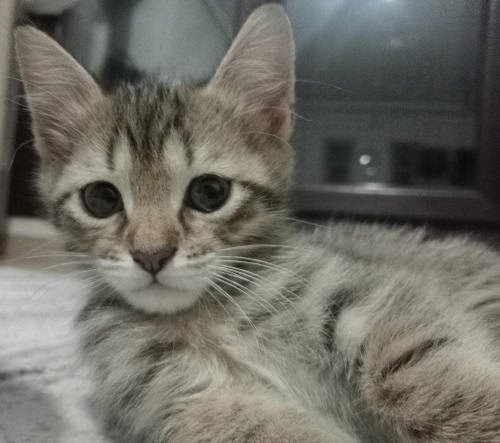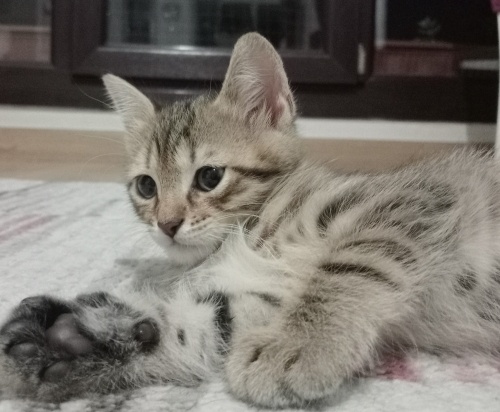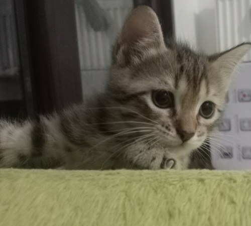 İnsan canlısı, oyuncu yavru kedimiz British Shorthair / Tekir karışımıdır. 1,5 aylık olan minik dostumuzun tuvalet eğitimi vardır yaş mama ve kuru mama yiyebilmektedir. Göz rengi henüz bilinmemektedir; 2 aylık olduğunda netleşecektir.