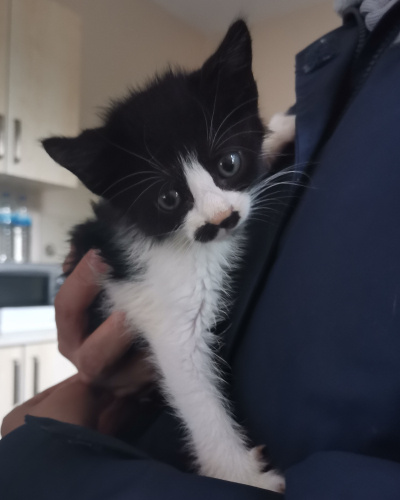 1.5 aylık, annesiz kalmış. Kuru mama yiyiyor Kum kullanıyor. Sıcak kanlı bir kız bebek.