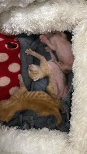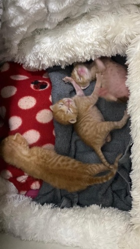 2 dişi bir erkek. 15 günlükler. Anneleri dogum esnasında plesentayı atamamış bağışıklığı düştüğü için de tedavi görüyor şuan . Veteriner hekimimiz umut yok demişti ama çok şükür iyiye gidiyor tedavisi. Ancak bu 3 yavru geride kaldı annenin bakacak durumu olmadığı için yanına veremiyoruz. Kedi bakımından anlayan onları evladı gibi görecek , sevecek, hevesi geçince sokaga atmayacak anne babalarını arıyorlar. Tek tek ya da ayrı ayrı sahiplendirme yapılacaktır. İletişim: 05010962307