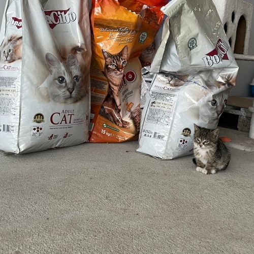 Sokakta bulduk, arabaların altına koşuyor çocukların elinde hırpalanıyordu. Aşırı insancıl, sevimli bir kedi. Kum ve kuru mama alışkanlığı var. İç dış parazit uygulamasını yaptık. 50 günlük. Bilinçli iyi bakan bir aile arıyorum