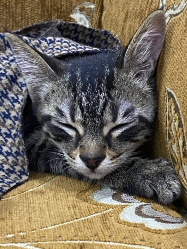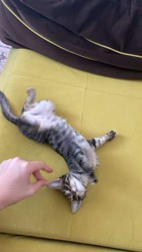Bir süre önce sokakta annesi tarafından terk edilen, yaklaşık 3 aylık minik bir yavru kediye sevgi dolu, güvenli bir yuva arıyoruz. Henüz çok küçük, gözleriyle dünyayı yeni keşfediyor… Oyun oynamayı, insanların yanında olmayı çok seviyor. Sevecen, meraklı ve konuşkan bir karakteri var. Kucağınıza alır almaz mırıldanmaya başlıyor