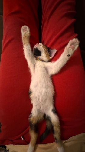 Annesi tekrar hamile kalınca bu yavruyu kendi kaderine bırakmış.Çok küçük ve biraz korkak.Kum alışkanlığı var.Kuru mama yiyor.Son derece sağlıklı bir bücür.