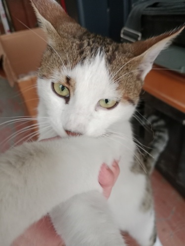 6 aylık civarı leo mahallemizde bulunan suriyelliler tarafından ev içinde altı ay kadar bakıldı ve sonrasında sokağa bırakıldı. Müthiş sıcakkanlı. Uysal ve tırnak çıkarmayı dahi bilmiyor. Çoooook tatlı. Miyavlarken sesi dahi duyulmuyor. Kum eğitimi kesinlikle var . 2.kedi olarak ta mükemmel uyum sağlar. Lütfen leo ya bir şans verin . Asla pişman olmayacaksınız!