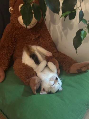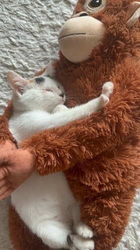 Çocuklarla bile iyi anlaşacağını düşünüyorum. Hırçın değil ve çok sakin bir kedi.