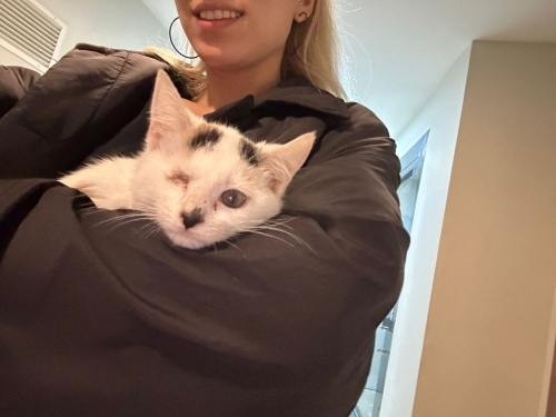2-2,5 aylık, dişi, tek gözü olmayan minik bir kedicik sahiplendiriyoruz. İç ve dış parazit tedavileri yapılmıştır.