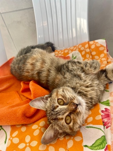 Abim iş yerinde yemekhanede bulmuş sevgiye muhtaç bir şekilde . Diğer gezen kedilerden farklı olarak daha bakımsız ve hasta gibi gözüktüğü için orada bırakamamış. Gözü yaşarıyordu kötü beslenmiş hep onun için tedavi uyguladık iyileşti ilk geldiği güne nazaran çok iyi ama onu seven ve bakıp güzelliğini ortaya çıkaracak bir aileye ihtiyacı var . Kucaktan inmeyen , oyuncu , arsız kedilerden :) iç dış parazit yapıldı .