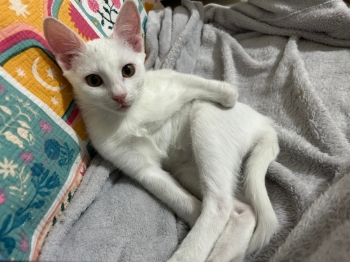 Bir ay önce ön patilerinden birisi kopuk bir halde buldum. Tedavi ettirdim. Bir patisi yok. Erkek, beyaz, iç-dış paraziti yapıldı. Kum alışkanlığı var. 5 aylık olduğunu düşünüyorum. Oyun oynamayı çok seviyor. Diyarbakır, Silvandayız. Diyarbakır ve Batman’a ulaşım sağlayabilirim.