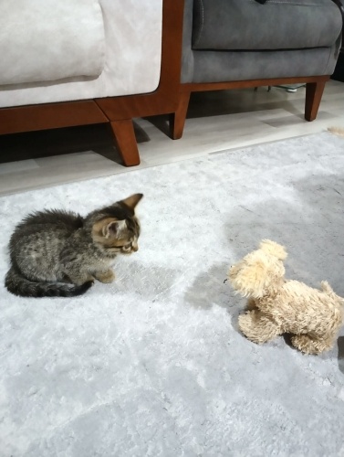 Patinin annesinin başına ne geldi bilmiyoruz ama artik annesi yok. Tek yavruydu caddede yalniz kalinca eve aldık. Cok oyuncu ve zeki bir kedicik. Henüz 1 aylik. Disi olduğunu düşünüyoruz ama cok küçük diye emin değiliz. Tuvalet egitimi var. Kuru mama yiyor. Tekir kediler akıllıdır eve uyumludur. Bizim de kedimiz var o da tekir. O yüzden biz sahiplenemiyoruz. Ona guzel bakacak bir aile arıyoruz. Arada bize video foto göndermesi yeterli. Lutfen ömürlük bakacaklar arasın.