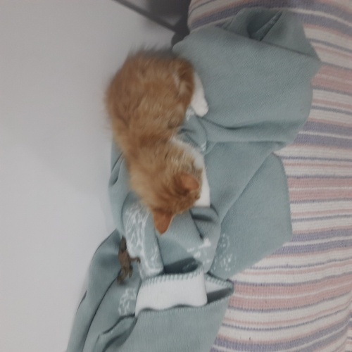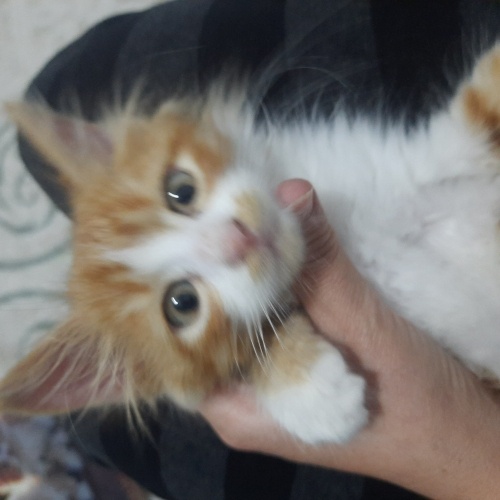 Bu minnoş annesiz kaldi kardeşleri de birkaç günde kayboldu. Aynı şey onun başına gelmesin diye eve aldık. Pofuduk bir yavru. 2 aylik.Tuvalet egitimi var. İç parazit asisi yapıldı. Kuru mama, peynir, yogurt, balık, tavuk yiyor. Cok oyuncu ve sicakkanli ve masallah saglikli bir kedi. Bizim kendi kedimiz olduğu için ve o asla kabul etmediği için sahiplendirmek istiyoruz. Ömürlük bakacak bize de bir sure arada foto ve video atacak birini arıyoruz.