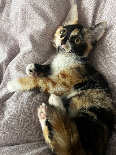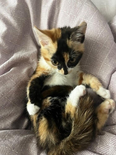 Sokakta bulduğumuz 2 aylık dişi bebek, kalıcı yuvasını arıyor. Irkı Calico'dur.