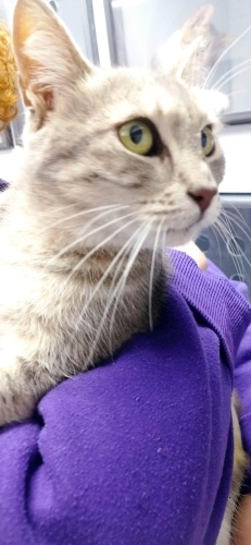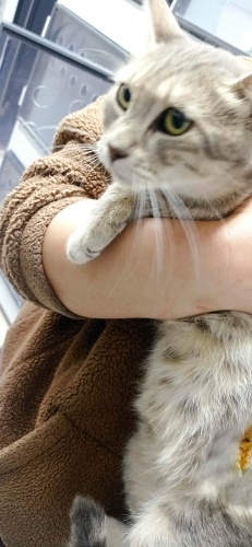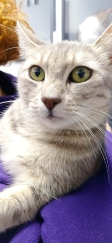 Gümüş sokakta yaşayan dünya güzeli açık gri yer yer kötü desenleri olan 3 yaş civarında bir güzel. Sokak ona acımasız davranmış, sürekli anne olup bebekken bebek bakmaya başlamış.En son 3 yavrusunu büyütürken yüzüne bir tekme atmış bir canavar. Hem yüzü yaralanmış hem dişleri kırılmış. Tedavi oldu, yarası iyileşti, kırık dişleri çekildi, kisirlasti. Muayene sırasında kalbinde de problem olduğu ve sokakta yapamayacağı, ilaç kullanması gerektiği anlaşıldı. Uysal, sessiz, melek yüzlü, güzel gözlü bu kıza bir yuva arıyoruz. Şu anda yaşadığı sokakta , bir yeri var orada duruyor. Ailesini bekliyor.