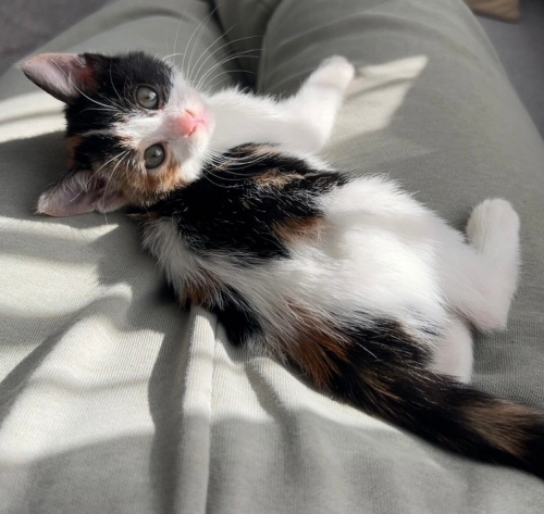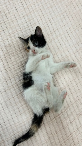 İstanbul Beylikdüzünde. Harika bir calico dişi yavru kedi. Sokakta annesiz ağlarken bulundu. Kuru mama yaş mama yiyor. Tuvaletini kuma yapıyor. İç dış parazit aşılarını oldu. Yaklaşık 1,5-2 aylık. İnsanları çok seviyor sürekli temas istiyor. Sokağa dönmesin. Bu şans kedisi, size şans getirsin mi?