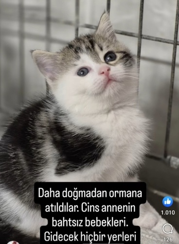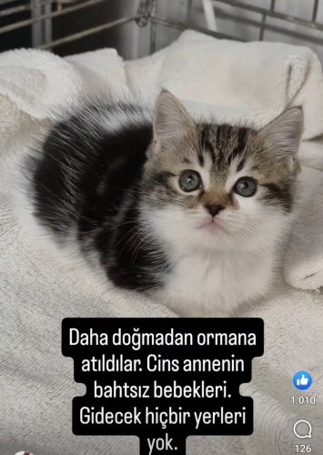 Anneleriyle birlikte atıldıları ormanda bulunup korumaya alındılar. Sağlıklılar. İç ve dış parazit uygulamaları yapıldı. Kum eğitimleri var ve kuru mama yiyorlar. Bu dünya güzeli bebişlerden birini ömürlük olarak sevgi ve şefkatinizle sarmalayıp pamuk kalpli meleği siz olur musunuz? İletişim tel:5052622164 ÇİP VE TAKİP SÖZLEŞMESİ VARDIR‼️