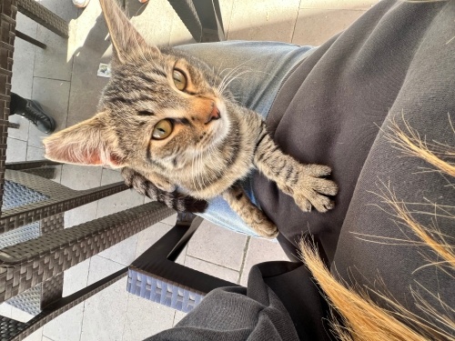 Raşit yaklaşık 7 aylık erkek tekir. Aşşşırı insan canlısı kucak delisi bi çocuk. Kısırlaştırma, kuduz aşısı ve iç dış parazitleri yapıldı. İş yerimizin bahçesinden onu kurtaracak ailesini arıyoruz. Sokak kedisi olamayacak kadar uysal bi çocuk. Diğer kedilerle de anlaşıyor.