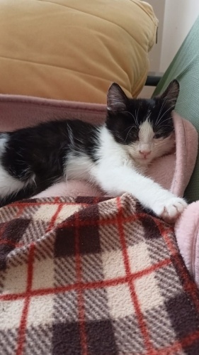 Sokakta perişan halde bulundu, annesi terketmiş. Dışarıda yaşayamacak kadar küçük. Sağlık durumu çok iyi, iştahlı oyuncu ve ilgi bağımlısı bir kedi.. Evde başka kedilerimizde olduğu için kalması mümkün değil. Bir hafta içinde yuva bulunamazsa maalesef sokağa geri dönecek. İsteyene fotoğraf video atabiliriz