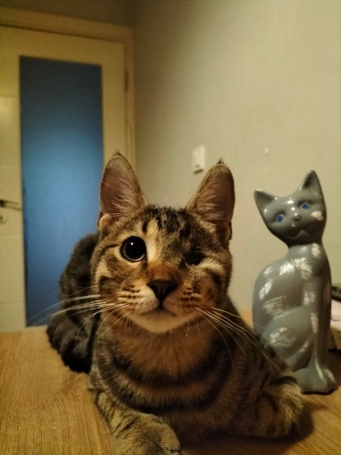 Merhaba Bu bebeği henüz 2 aylıkken bulduk. Bir gözünde yoğun enfeksiyon vardı tedaviye yanıt vermedi malesef ve alınmak zorunda kaldı. Tek gözü de olsa bıcır bıcır oyuncu mu oyuncu bir çocuk. 4 aylık civarı tedavisi bitene kadar sahiplendirmek istemedik. Şu an çok sağlıklı. İç dış parazit tedavilerini oldu. Kum alışkanlığı var. Temiz ve titiz birisi :) Biz onu çok sevdik ancak evde sayımız çok fazla olduğu için sahiplendirmek durumundayız. Onu çok sevecek evladı gibi görecek ailesini arıyoruz ❤️