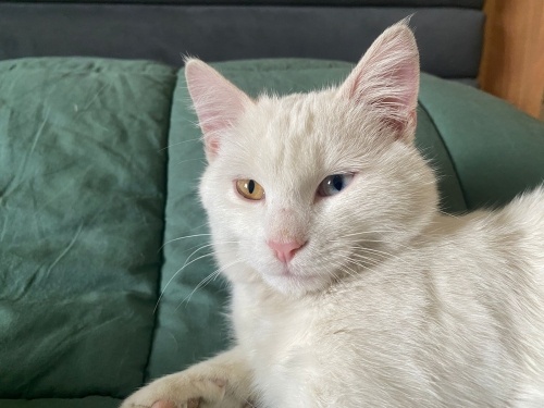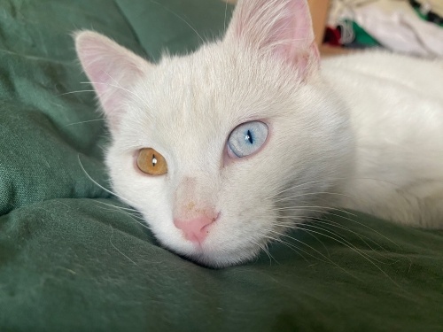 Boynunda tasma ile buldum cins bir kedi Van kedisi. Normal şartlarda satılan ve yüksek ücret talep edilen bir cins. Ben ücretsiz sahiplendirme yapacağım. Çok uysal ve uyumlu eve alışkın. Kum eğitimi var kuru mama yiyor sıcacık bir yuva arıyorum ona. Satın Alma Sahiplen 🙏🏻