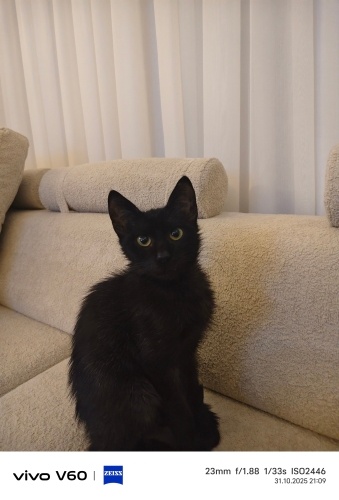 Onu geçen ayın sonunda evdeyken, sokaktan gelen miyavlama sesinden duydum. Biraz ısınsın, korkusu geçsin diye eve aldım. Alerjim olduğu için tamamen sahiplenemedim. Veterinere götürüp iç/dış parazitleri yapıldı. Ama ağzında yaralar var ve dişi kırılmış. Sokakta biraz hırpalanmış ve sevgiye aç bir kedi. Kum eğitimi var. Şuan yavru kedi maması yiyor. Uzak yere otobüsle vs gönderemem. Araba yolculuğunu seviyor ama tercihi kucakta olmak. Box pek sevmiyor.