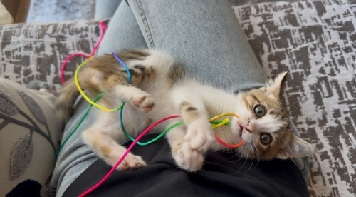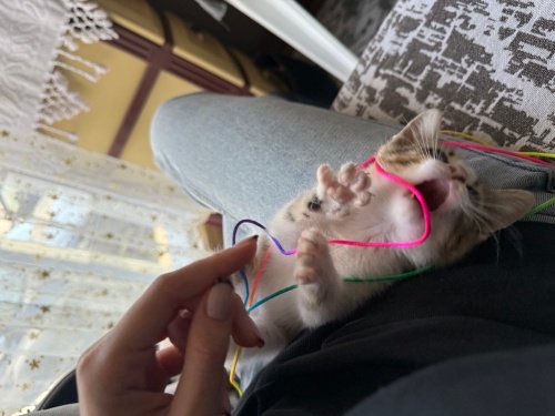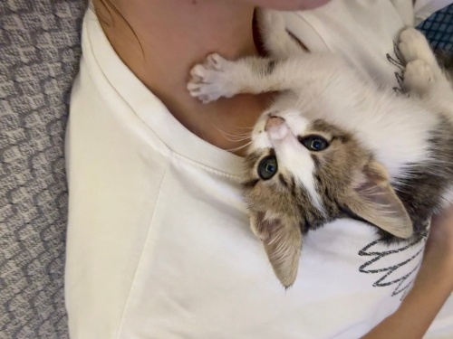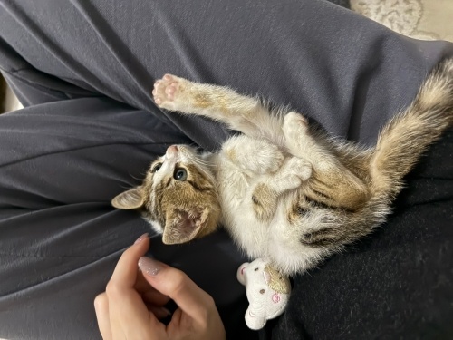 Hikayesi olan bir yavrumuz. İzmirde sağanak yağış varken çöpün yanına atılan koltuğun kırık kol kısmına saklanmış. Yol kenarı olduğu için muhtemelen kaçamamış ve çok ıslanmıştı. Yoğun pireleri vardı. Korumaya aldım. 40-45 günlük, dişi, tekir bir kedi. Yavru kuru maması yiyor. Annesini aradığı için insanlara çok düşkün. Boynunuzda uyur, sevgi dolu. Kumunu kullanıyor. Kedilere karşı ürkek değil(3 kedi ile yaşıyor şu an). İzmir içi yuva arıyorum. Camlarda kedi filesi/sineklik zorunludur. Sonraki süreçte iletişimde kalabileceğim, çip ve gerekli veteriner/aşı/kısırlaştırma ihtiyaçlarını yaptırabilecek aile olabilecekseniz kendinizi ve bakacağınız koşulları anlatan mesaj atabilirsiniz. İzmir gaziemirdeyiz
