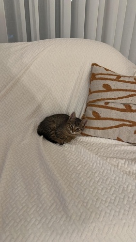 Sokakta bulduğumuz, yaklaşık 2 aylık bu tatlı yavrumuza maalesef iş seyahatlerimiz ve yoğun tempomuz nedeniyle yeterince vakit ayıramıyoruz. Marla ismine alışmaya başladı, çok oyuncu, zeki ve sevgi dolu bir minik. Kum kabı, yemek kabı, oyuncakları ve yatağıyla birlikte sahiplendirilecektir. Gerçekten ilgilenebilecek, ona sevgi dolu bir yuva verecek bir aile arıyoruz.