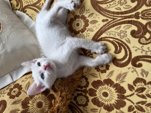 Sitemizin bahçesinde bulduk, çok oyuncu sevecen hareketli bir yavru kedi. Gözlerinin biri mavi biri yeşil. Yavrumuza iyi bakacak bir yuva arıyoruz.