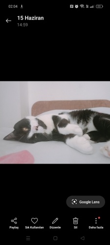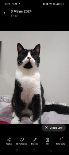 Zeytin yavruyken sokaktan aldığım bir yavru. İki buçuk yaşında. Çok oyuncu çok akıllı. Elimden geldiğince parazit ve aşılarını yaptırdım. Lösemi dışında yapılması gereken aşı kalmadı. Kısırlaştırmadım. Babamın kanser olduğunu öğrendik yakın tarihte ve ne yazıkki zeytinden ayrılmak zorundayız. Çünkü zeytin babamı çok sever ve sürekli üzerinde uyur. Oysa babamın durumu ilerlemekte ve tüy dahi babama zarar vermekte. Böyle hüzünlü bir vedayı ben de istemem ama ne yazık ki seçim yapmam gerekiyor. Bende zeytine güzel bir aile bulup ara sıra görmek istiyorum.