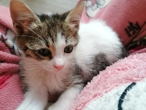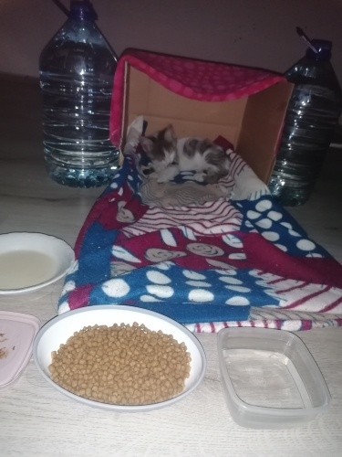 Muhtemelen Eylül başı gibi doğmuş. Sokakta bulduğumda soğuktan titriyordu. Şu an sağlıklı, bir sorunu yok. Kuru mama yiyor, tuvalet eğitimi var. Oyun delisi, kendinden büyük abi ve ablalarına kafa tutacak kadar cesur bir kız çocuğu.