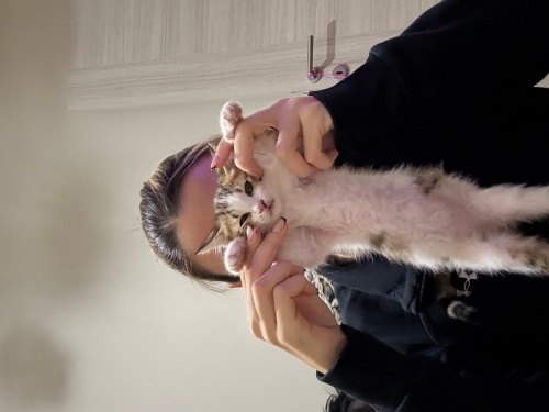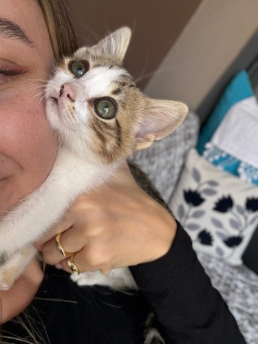 Hikayesi olan bir yavrumuz. İzmirde sağanak yağış varken çöpün yanına atılan koltuğun kırık kol kısmına saklanmış. Yol kenarı olduğu için muhtemelen kaçamamış ve çok ıslanmıştı. Yoğun pireleri vardı. Korumaya aldım. 45 günlük, dişi, tekir bir kedi. Az az yavru kuru maması yiyor ayrıca kedi sütü veriyorum. Annesini aradığı için insanlara çok düşkün. Boynunuzda uyur, sevgi dolu. Kumunu kullanıyor. Kedilere karşı ürkek değil(3 kedi ile yaşıyor şu an). İzmir içi yuva arıyorum. Camlarda kedi filesi/sineklik zorunludur. Sonraki süreçte iletişimde kalabileceğim, çip ve gerekli veteriner/aşı/kısırlaştırma ihtiyaçlarını yaptırabilecek aile olabilecekseniz kendinizi ve bakacağınız koşulları anlatan mesaj atabilirsiniz. İzmir gaziemirdeyiz