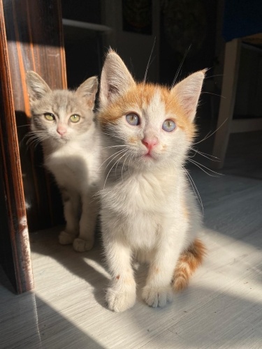 tuvalet eğitimi var, iç-dış yapıldı. aşı için henüz o kilo ve o yasta değiller. Kuru mama yemeye başldılar. Genel sağlık kontrolü yapıldı. Herhangi bir sağlık problemleri yok.