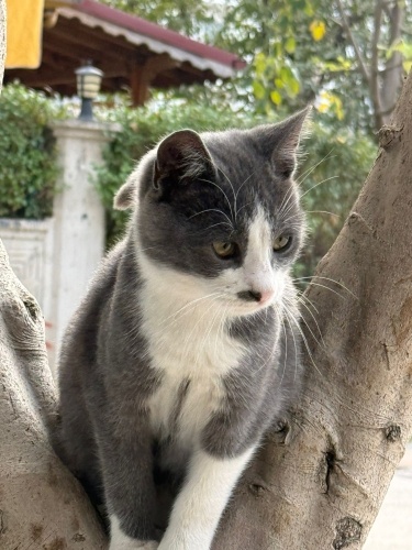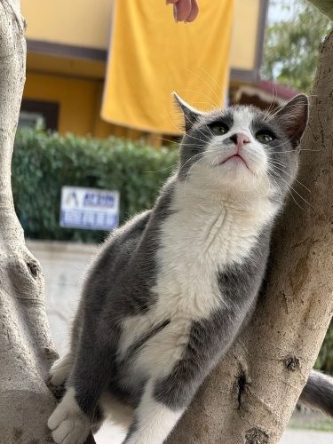 ofisimizin kapı önünde diğer sokak kedilerimiz ile bakıyoruz çok tatlı çok minnoş çok akıllı bir kedi yuvalandırmak istiyoruz