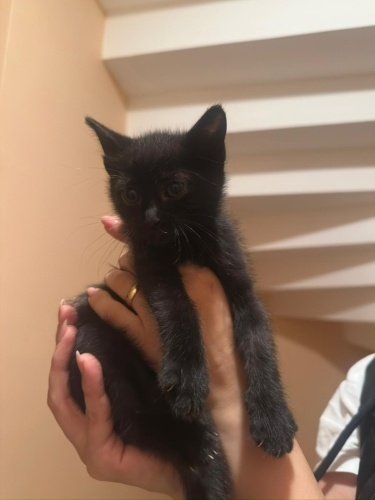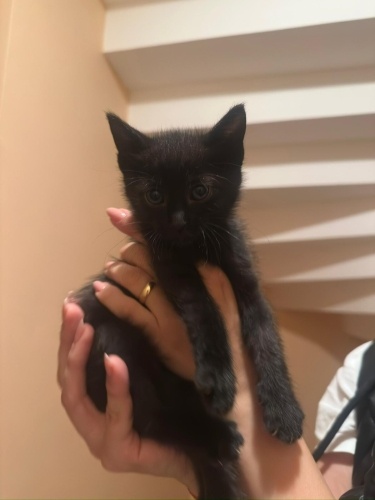 1.5 aylık. Anne sütü emdi, kuru mama yiyor. Kum eğitimİ var. Gayet sağlıklı. Diğer 3 kardeşi sahiplendirdik.