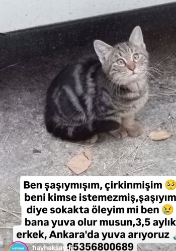 Yaklaşık 3 ay civarında. İç ve dış parazitleri yapıldı. Sevgi dolu, uysal ve uyumlu bir can. İnsana çookk düşkün, sevecen, insancıl. Onun da korunmaya, sevilmeye ihtiyacı var. Onun da güvende olmaya ihtiyacı var. ONUN PAMUK KALPLİ MELEĞİ SEN OL‼️SEVGİNLE, ŞEFKATİNLE SARMALA‼️ İNAN HER ŞEYE DEĞER‼️ İLETİŞİM TEL:5356809689