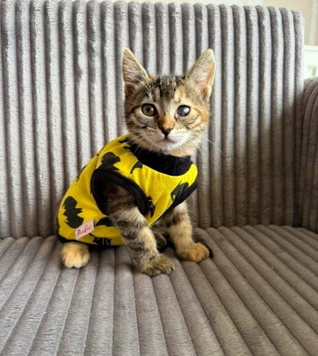 1 gözünde malesef görme kaybı var.Gereken tedaviler veteriner gözetiminde yapıldı ama ancak bukadar kurtarılabildi.Ne yaşadı henüz süt bebek hali ile bilmiyoruz..