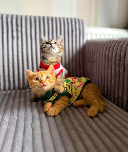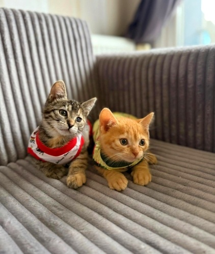 Asu ve Aslan,1.5 aylık iki kardeş.Mama yiyor,kum kullanıyorlar.İç-dış parazit uygulamaları ve veteriner kontrolleri tam.
