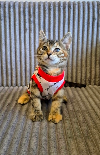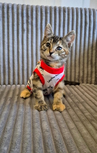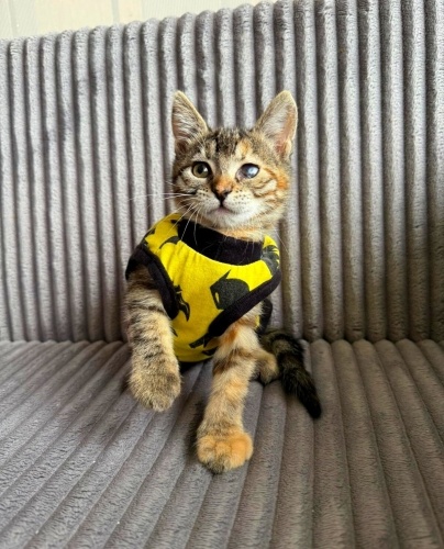 1 gözünde malesef görme kaybı var.Gereken tedaviler veteriner gözetiminde yapıldı ama ancak bukadar kurtarılabildi.Ne yaşadı henüz süt bebek hali ile bilmiyoruz..