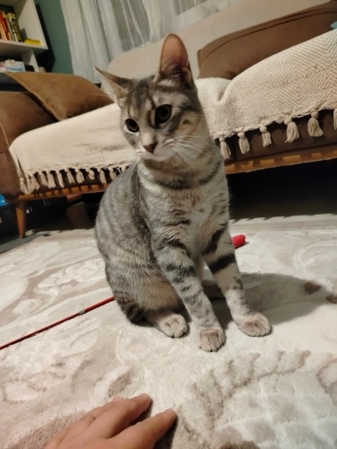 Ev ortamına tamamen alışkın, tuvalet eğitimi vardır. Sakin ama oyuncu, sevecen ve kucak seven bir kedidir. ❤️ Sahibinin yanında uyumayı sever, tam bir dost olur.