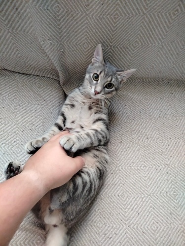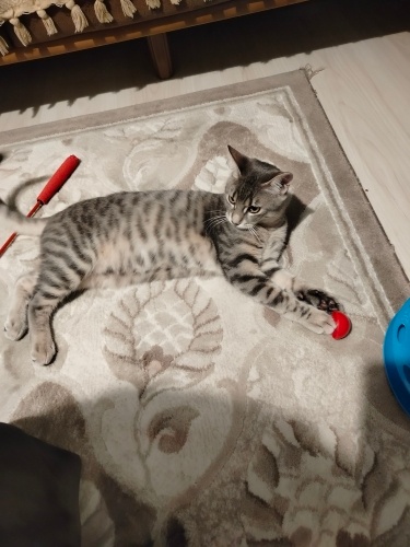 5 aylık erkek gri tekir kedim Duman, sıcak bir yuva arıyor. Tüm aşıları tam, sağlıklı ve tertemizdir. 🩺