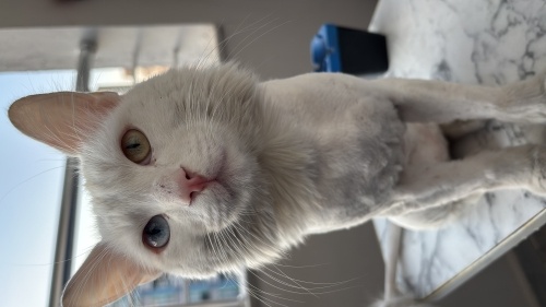 Sokakta perişan halde bulup bakım ve aşılarını yaptırdım,çok kirlendiği için traş edildi, geçici olarak eve aldım.1.5 yaşında, erkek, van kedisi.Çipi var, sahibine ulaşmaya çalıştık ama aramalara ve mesajlara dönmedi.Daha önce evde büyütülüp sokağa atılmış, tam bir ev kedisi. Teması, kucakta oturmayı, kendini sevdirmeyi çok seviyor.Sürekli püür pürr peşinizde dolanan sakin, miyavlamayan bir can.Ona evinizi açın❤️İstenilen ilçeye tüm maması, kumu, kapları ile teslim edilecektir, yeter ki sevilsin ve sokağa dönmesin